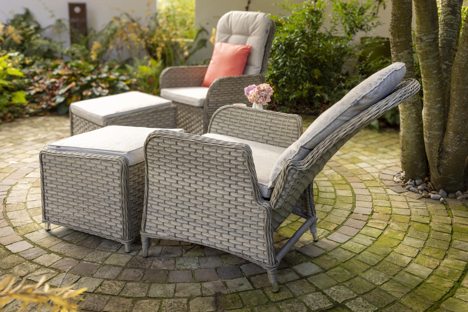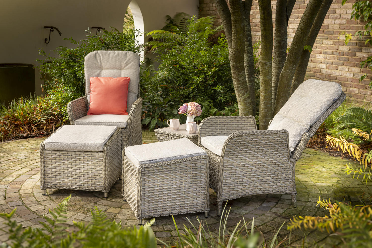 • Set includes: 1 x Side Table, 2 x Reclining Chairs & 2 x Footstools